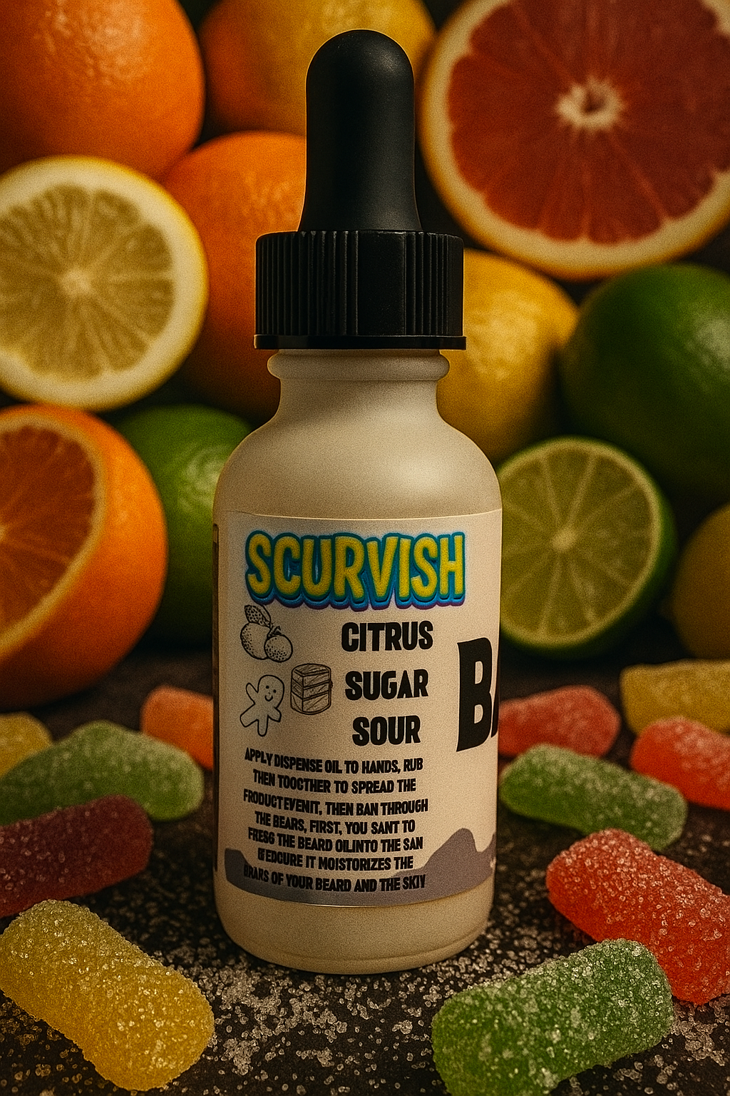 Batten down the hatches — the citrus storm is rollin’ in. Scurvish is a bright, tangy beard blend brewed for the bold. Inspired by the reckless flavor of a summer sour and the legend of pirates who dodged scurvy with barrels of citrus, this scent explodes with juicy grapefruit, sun-soaked oranges, and sharp lime zest — all mellowed by sweet pineapple and a dusting of sugar. One whiff and you’ll feel the ocean breeze, the beer foam, and the mischief of Gasparilla at high tide.