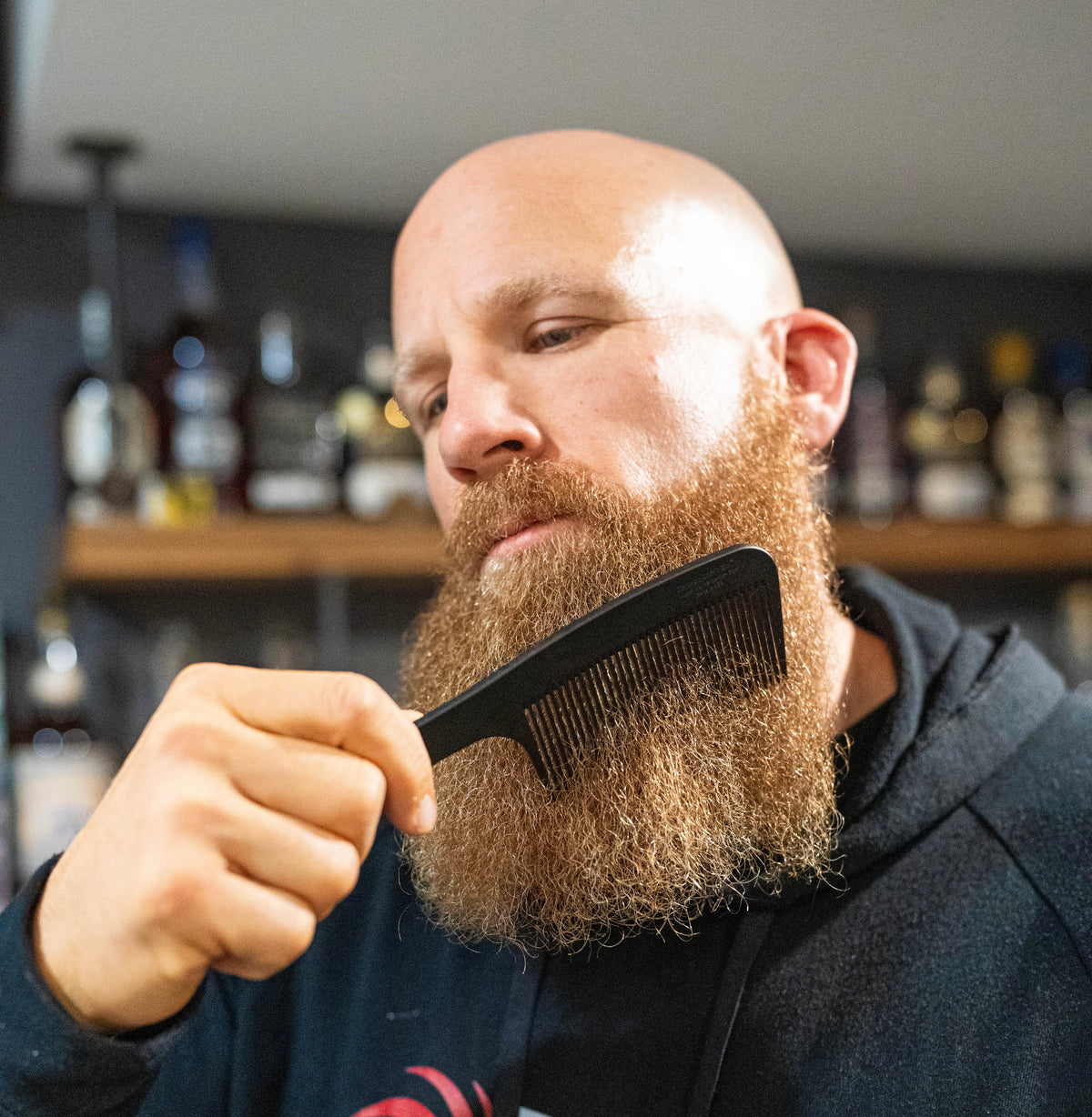 Convenient loop at the end to hang up comb after use. Made of an amazing carbon fiber composite that's smooth, light, and strong. Unlike most combs, it’s anti-static, heat- and chemical-resistant, and can be left in the shower without warping. Made in USA.